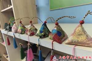刘晶首先讲述了端午节的起源与习俗,从屈原的爱国情怀到龙舟竞渡、粽叶飘香等,引领学生体味中华文化的深厚底蕴。聚焦习俗背后的“心理智慧”,解析悬挂艾草、佩戴香囊等传统习俗体现了古人对心理慰藉和积极应对的朴素追求,与现代心理学倡导的“积极应对”理念不谋而合,赋予了传统节日新的理解维度。实践环节,学生亲手缝制香囊,体验“心流”: 穿针引线、填充艾草、缝合收口……专注的缝制过程让学生暂离日常纷扰,在安静劳作中凝聚了心神,体验到动手创造带来的宁静满足与成就感。不仅提升了学生的专注力,也给他们带来积极的情绪体验。活动尾声,刘晶鼓励大家将包含心意的香囊赠予亲友,寄托美好祝福,营造温暖支持的人际氛围。学生在给予关怀的过程中,也会感受到自身行动的价值与意义,为心灵成长注入了积极能量。