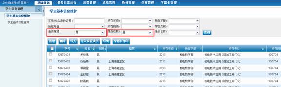 2、“教务管理”/“基础数据”/“学生信息管理”/“学生基本信息维护”,条件设置为“在籍在校”(默认状态应该就是在籍在校的)如下图所示: