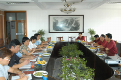 谢益民一行饶有兴趣地参观了工业学校的实训车间及学生公寓,观看了实行半军事化管理后的学生用餐情况。对工业学校近年来在学生管理方面所取得的成绩,表示高度的赞赏。双方领导表示今后要多多合作,努力为上海的职业教育多作贡献。