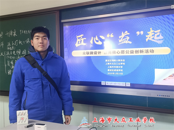 宿舍里,孙钰轩的书架上整齐摆放着国家资助政策汇编、技能大赛获奖证书、专业技术书籍,它们共同见证着他的成长蜕变。作为受助学生,他始终牢记“受助思源、获奖思进”。他将竞赛中积累的数据分析方法整理成学习笔记,在班里开设“技能小课堂”,为同学讲解无人机控制中的代码逻辑,同时带领同学们积极备战2025年上海市星光计划大数据项目的比赛;在学业水平考过程中,他化身“数学小老师”,为同学们讲解数学题;在校园志愿服务中,他带领团队为社区老人演示无人机巡检技术,用通俗易懂的方式解读科技如何服务民生;他还热心公益事业,学校与嘉定区残联联合举办的“匠心‘益’起”活动中,他参与设计老年人寻物系统,为老年人提供帮助……这些实践让他明白,技能报国不仅是在赛场上争金夺银,更要让专业知识扎根现实,成为服务社会的力量。