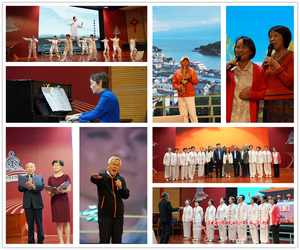 文艺表演环节成为活动的“暖心亮点”,由退休教职工自导自演的节目轮番登场,赢得阵阵掌声。黄强老师带来的萨克斯独奏《肩上的云》《搀扶》,旋律悠扬婉转,将岁月的温情融入音符;姚惠英、姚惠琴两位老师合作的沪剧表演唱《母女会》,唱腔韵味十足,尽显传统戏曲魅力;李一方老师的钢琴独奏《北风吹》,指尖流淌的旋律勾起在场众人的时代记忆;张玉柱老师朗诵的《爱永在》,字里行间满含对校园、对教育事业的深情;李华、齐晓艳等八位老师演绎的传统健身功法《八段锦》,动作舒展流畅,展现出退休教职工们积极健康的生活状态。最后,全体人员共同唱响《歌唱祖国》,在李永方老师的指挥下,嘹亮的歌声回荡在会场,将活动氛围推向高潮。