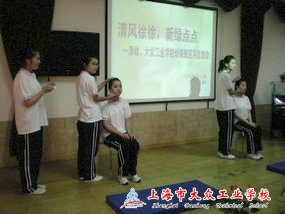 5月24日上午,清河路幼儿园举行了一场别开生面的实习交流总结会,教育局领导、两校的领导都参加了此次活动。嘉宾们首先观看了心灵手巧的保育员和同学制作的手工艺品,连连称赞保育员队伍不简单。接着朱芳副局长作了了热情洋溢的讲话,她激励学生要认真跟着师傅学技能、跟着老师学知识,成为一支年轻有实力的力量充实到嘉定的幼儿保教队伍中。吴晓岚也代表同学发了言,两周的实习,通过师傅的耐心指导,大家学会了很多实践操作,技能都有了很大的提高。吴晓岚同学的师傅是一名优秀的高级保育员,她向同学们讲述了工作中的体会,保育员不但要有娴熟的操作技能,更要具备“四心”即爱心、细心、耐心和责任心,使同学们深受启发。最后一个环节是才艺展示,保育员们活泼生动地表演了幼儿体操,轻松而明朗的节奏令台下的嘉宾一起打着节拍,掀起了一个小小的高潮。我们的学生也不甘示弱,急诊救助技能演示、儿歌联唱,都博得了满堂彩。不知不觉,内容丰富、形式活泼的实习总结会临近尾声……