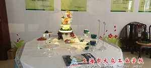 从开学至今,夜晚的烹饪实训室里总是灯火通明,放学之后,烹饪指导教师杨广老师带着同学们依然留在实训室里勤练技能。本次比赛杨老师的雕刻作品是“鱼戏莲叶”图。南瓜雕刻的金鱼摆动着尾巴,全身灿然,显示出无限的生机;心里美萝卜雕刻的莲花正婀娜地盛开着,片片娇艳无比;晶莹剔透的白萝卜雕刻的大型白珊瑚犹如玉树挺立,在水中招摇八方来客;最夺人眼目的应属那碧绿碧绿的荷叶,上有白色的露珠,细细的刀工尽显荷叶的脉络,原来高高低低的荷叶费劲了杨老师的心血,每一片,每一刀,都需要精雕细琢,稍有不慎则会前功尽弃。当看到这立体的栩栩如生的鱼戏莲叶大型雕刻作品时,在惊艳于刹那间的逼真的同时,你肯定会想到这光艳凝聚了热爱烹饪事业的职教教师的满身心血与精益求精。除此之外,比赛当天还有其他几道美味佳肴呈现,全方位的考验了我校烹饪中餐指导教师的综合技能,杨老师不负学校的厚望,每一样作品都极为考究,得到了评委老师们一致的称道。