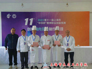 我校作为承办方,赛前积极筹划赛前准备工作,为职业院校中餐烹饪专业教师搭建竞技切磋与交流平台。来自全市6所中专、高职院校的12位专业老师参赛,本次比赛特邀请了上海市烹饪行业协会的知名专家担任专业评委。根据比赛规则,参赛选手需在150分钟内完成三道鸡肉菜肴的制作。在有限的时间内,如何烹制出制作精美、设计独特、味道鲜美的菜肴是摆在选手们面前的一道难题,选手们各个沉着冷静,制作熟练,烹制出了色、香、味、形、质,皆可圈可点的菜品,体现出了烹饪教师们的过硬水平。我校烹饪教师在这次角逐中杨广老师喜获二等奖,蒋明均老师喜获三等奖。