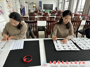 张波老师,他不仅是中国书法家协会会员,还担任着上海市书法家协会理事、上海市嘉定区文联副主席、嘉定区美术书法工作委员会主任以及上海市嘉定区书法家协会主席等多重职务,显示了他在书法艺术领域的深厚造诣和广泛认可。张老师这一学期教大家行书的书写,每一次课张老师都热情地为老师们讲解书法书写过程中的各种问题,其中有艺术组的老师,有专业课老师,还有基础课老师,问题不一,但张老师都耐心地予以一一解答。特别是有老师第一次来上课,请教楷书横画的写法,张老师详细地讲解了楷书横画的三种写法,并说明了三种写法在不同情况下的应用,理论功底深厚,显示出书法家的渊博学识。