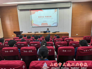 当日中午,阶梯教室气氛庄重,经济管理系团工作负责老师吴清逸也来到了现场,全体团员身着正装,佩戴团徽,以昂扬的精神状态参与其中。活动伊始,主持人走上讲台,用清晰的声音阐述了本次团会的重要意义与流程安排,强调国家安全与每个人息息相关,青年更应担当起维护国家安全的责任。