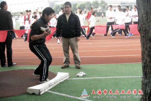 在此次运动会里,汽修教学部093C班的苏锴同学报名参加了铅球和100接力赛。苏锴同学身材瘦小,在同学和老师印象里适合苏锴的运动项目可能是跳高或跳远。的确,苏锴的跳高成绩一直不错,但是,此次运动会苏锴同学却选择了铅球作为自己的参赛项目。在老师和同学们的担心和质疑下,苏锴在运动会当天,站在了铅球比赛场地上。一扔,9米!对于身材如此单薄的苏锴来说,9米,足可以使在场的师生们感到惊讶。铅球比赛结束了,苏锴并没有取得名次,但是对于苏锴的勇气和力量,让老师和同学们又重新认识了这位来自福建的小伙子。