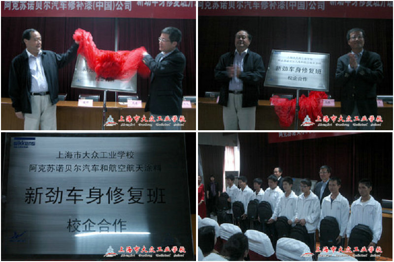 2011年10月25日下午2点整,在华体会体育四号教学楼的阶梯教室中,举行了一场简短而又隆重的阿克苏诺贝尔汽车修补漆(中国)公司与我校合作办学的新劲车身修复班开班典礼。出席本次典礼的校领导有高康校长、党总支书记梁桦老师以及汽修教学部主任邱伟明老师,阿克苏诺贝尔汽车修补漆(中国)公司的出席代表有公司的巫伟光总经理和杨钧经理。