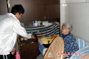 和前几次一样,接待志愿者们的是福利院的徐主任,接下来服务小队的成员们两两分散开来,为不同寝室的老人们送上水果和点心。服务小队的刘清华和王婷两位同学注意到有一部分老人们喜欢坐在楼道外的椅子上晒晒太阳,于是她们在为寝室的老人们派发完水果之后又来到楼道为那里的老人送爱心。这个过程里,刘清华同学正巧看见一位年纪很大的老爷爷要下楼梯,她急忙上千搀扶他,老爷爷客气地对她说了声“谢谢”。