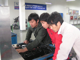 2009年11月17日和11月18日两天下午,汽修部参加上海市技能比赛的选手们,来到了上海市交通职业技术学校进行设备熟悉和客场演练。客场作战会给参赛选手们带来很多意想不到的困难。客场作战最大的难点就是在于比赛设备的不熟悉。虽然,与此次比赛相关的设备仪器在我校汽修部实训中心都能见到,可与比赛当天的设备仪器比起来,在控制面板和诊断插座上有很多不同,这使得参赛选手在比赛时要浪费一些时间,有时会因为比赛压力而不知所措。的确,当汽修部的参赛选手们来到上海市交通职业技术学校的实训中心时发现,比赛用的实验设备与汽修部的实验设备虽然原理相同,但操作起来十分困难,有时已判断出故障原因却找不到诊断端口。一些在平时训练的很熟悉的项目,在换了一台设备仪器之后,总感觉用的不顺,很难进行操作。