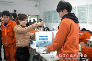 在校企两方领导的讲话之后,为了感谢各位同学报名参加新劲油漆班,阿克苏诺贝尔公司为今天参加开班仪式的40名新劲油漆班的同学每人准备了一份礼物。在同学们高兴地换上了阿克苏诺贝尔公司为每位同学的提供的工作服和工作帽之后,来到了实训中心的门口,与阿克苏诺贝尔公司的领导们留影告别。从身穿新劲工作服的同学们兴奋的面孔中,不难看出,同学们对新劲油漆班的期待和对学习新技术的渴望。