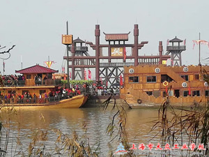 一下车,同学们就为气势磅礴的三国城门楼所惊叹。高大的三国景点城门楼上,幡旗招展,两尊汉代神兽:天禄和辟邪矗立于广场。在导游的带领下,同学们带着激动兴奋的心情来到了城门楼大道右侧的桃园跑马场观看三国城内最大、最精彩的演出项目——《三英战吕布》。只见那里驻扎着数十顶军帐,一曲英雄泪飞的结义曲响起,“刘备、关羽、张飞”正饮酒立誓,祭告天地。一组三国人物兵马群雕栩栩如生,形神兼备,再现名著、传说中的历史人物形象。整个表演场面宏大、惊心动魄,上演了一场酣畅淋漓的沙场血拼,同学们看着表演,回忆着故事情节,一个个激动万分。