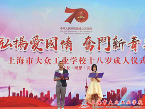 2019年10月25日周五下午,我校17级的全体学生举行了“成人礼”仪式。老师们为同学们佩戴成人帽, 赠送了《中华人民共和国宪法》,参礼学生向师长鞠躬行感恩礼。成人仪式在雄在雄壮的国歌声中开始。全体师生整齐列队,向国旗行注目礼,神情肃穆,唱国歌。杨建英副书记带领同学们向国旗庄严宣誓。