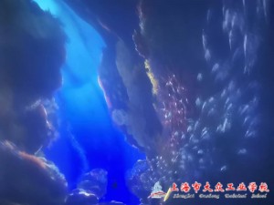 有的同学则步入鲸鲨水族馆区域,这个被称为“世界首创7°倾斜沉浸式鲸鲨缸”,通过一个弯弯的弧度,能让站在近处的人感觉自己也在大海中游弋。站在巨型的玻璃缸前,仿佛置身于海底,清澈的深蓝色海洋中各种奇妙物种从身边擦肩而过,视觉上的震撼效果不言而喻。
