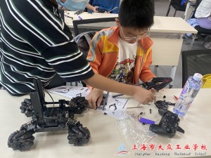 机械臂装配活动中,小朋友们两人一组,在指导老师陈学韬的指导下,按照说明书一步步地将小车拼装完成,看他们那认真投入的神情,好似一名名敬业的工程师。参与活动的家长和同学们都表示这个项目新颖有趣,在愉快的氛围中激发大家的探索能力,感受精益求精的匠人精神的同时,也能培养学生严谨认真的好习惯。
