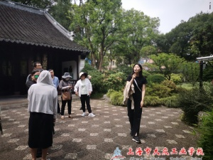 跟随讲解员的脚步,大家认真倾听。汇龙潭于明万历十六年(1588年)疏浚,相传因有五条河流交汇于此,形如五条长龙蜿蜒伸展之态。潭中有山岛一座,名叫应奎山,绿水环抱,犹如长龙盘绕明珠,鸟瞰之下,形似五龙抢珠之势,组成山水相依的自然风景。公园南部以汇龙潭水和应奎山组成山水相依的自然风景。北部姑苏庭院格局,小桥流水、曲径通幽。布局紧凑,古建筑相对集中,畅观楼、怡安堂、缀华堂造型各异,古朴典雅。