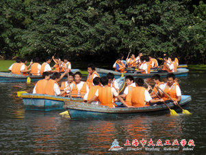 下午,同学们参加了“木筏漂流”、“毅园寻宝”、“垂钓”等一系列户外拓展活动。茂密的丛林、宽广的田野、稠密的河网,这批来自山西、云南、黑龙江的外省市同学都是第一次接触这些活动项目,有的甚至是第一次划船,他们在大自然的怀抱里尽情地玩、尽情释放自己的活力,在玩中接受教育、接受锻炼、感悟人生、陶冶情操。