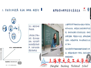 上海工商信息学校程春红老师首先交流了感想,她说,陈教授今天的分享,信息量巨大,研究基于海量的案例观察,从教育理论和学生心理学多角度剖析和佐证,构建学习共同体,走向深度学习的迫切性和必要性。虽然陈教授研究的对象是儿童,但教育理念是相通的,低阶思维的浅层次学习在中职学生中也普遍存在,如何在职业教育中导向深度学习也是我们需要深入研究和解决的一个课题。