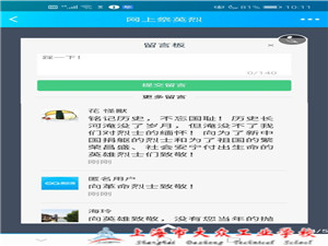 “铭记历史,不忘国耻!历史长河淹没了岁月,但淹没不了我们对烈士的缅怀!向为了新中国捐躯的烈士和为了祖国的繁荣昌盛、社会安宁付出生命的英雄烈士们致敬”……这是我系学生“网上祭英烈”活动的寄语,深情地表达出同学们对英雄、烈士们的深刻怀念和祝福。