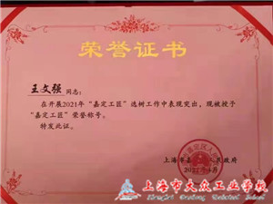 根据区政府《关于开展以嘉定工匠为引领的高技能人才品牌建设工作的实施意见》(嘉府规〔2018〕3号)精神,2021年“嘉定工匠”选树工作严格按照评选程序,共评出5位“嘉定工匠”、7位“嘉定技能标兵”和10位“嘉定技术能手”。这22名人选呈现出行业覆盖面广、学历技能等级高、岗位创新能力强等特点,涵盖航天、汽车、通信、教育、科技等多个领域。我校王文强老师是区教育系统唯一入选的教师,展现了我校弘扬“劳模精神”、倡导“工匠精神”、推进“劳动教育”的特色校园文化。