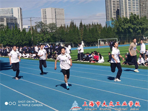此次径赛的运动员被分为多组进行比赛。现代制造系共有150多名学生参加田径赛。赛前,运动员们个个神情饱满,摩肩擦掌,在场地做热身准备。随着发令枪响起,运动员们像离弦的箭一般争先恐后的向前冲去,只见前面的参赛选手敏捷、矫健的身躯飞快的冲出了起跑线,甩开大步向前飞奔而去,其他的选手也不甘落后争先恐后地奔跑起来。各班级拉拉队的加油声,呐喊声此起彼伏,极大的体现了同学们的团结友爱精神。