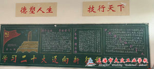 为深入学习贯彻党的二十大精神,讴歌党的光辉历程和伟大成就,传承红色基因,进一步激发学生的爱国主义情感,应学校要求,现代制造系新学期第一期黑板报的主题为“学习二十大,迈上新征程”。