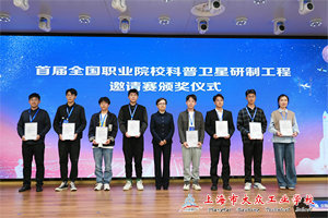 近日,2022全国职业院校科普卫星研制工程邀请赛颁奖活动在湖北武汉举行,我校师生李抒珽和刘烨团队、王聪齐和鲍子俊团队参加航天器零部件设计制造与应用赛项,陈彬和龚雨杰、曹宇翔团队、谢恩浩和樊俊杰、罗家奥团队参加无人机北斗差分定位自驾航线精准路径规划及障碍飞行赛项,最终取得了1个一等奖、2个二等奖、1个三等奖的好成绩。中国职业技术教育学会会长、教育部原副部长鲁昕为我校教师代表颁奖,并与获奖选手合影留念。