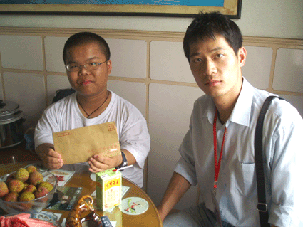 2007年5月23日下午,计算机教学部德育主任练子飞老师和彭欢老师一起利用下班休息的时间,走访了0651班朱俊同学的家,为他送上了慰问金。