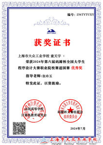 获得市赛银奖和国赛优秀奖对我来说既是一种鼓励,也是一种新的责任。我深知,在计算机科学的广阔领域里,还有许多未知的知识等待我去探索,许多新的挑战等待我去迎接。未来,我将继续深入学习与实践,不断扩展自己的知识边界,提高编程能力和解决问题的思维方式。同时,我也会积极参与更多的比赛和项目,以此来锤炼自己的综合能力,争取在更大的舞台上展现自我,实现更高的目标。