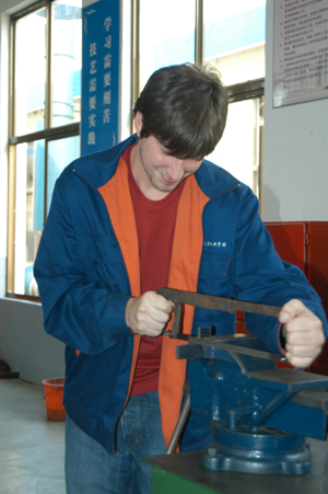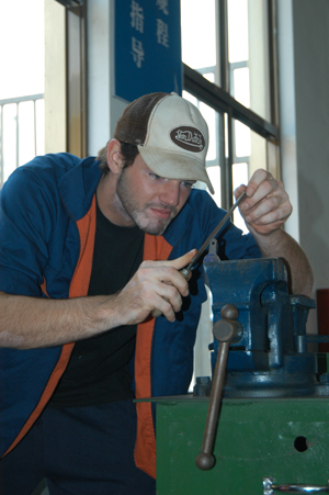 学期一开始,兄弟两先在0577班的教室里甘做学生,虽然有一些语言的障碍,但他们还是“忠实的听众”。经过1周的理论学习,两兄弟感觉有些操作方面的脱节,所以他们决定提前进入车间,扮演“勤奋的学徒”……