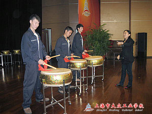 校鼓乐队是在机电教学部张志琴老师的组织和带领下开办起来的,到如今已有三年多的时间,在这几年中通过老师的努力,学生的积极配合,先后组织几批学生参加校外演出,为学校赢得了荣誉,增添了光彩,经过老师与同学们共同努力将中华民族的鼓乐艺术广为发扬。