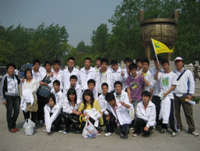 在校门口,我们看到了一群与众不同的队伍——05级高复录取的学哥学姐们组成的“导游团”,一位之前信息教学部的陆学长成为了我们随行的导游。他憨厚沉稳的行事风格、认真负责的工作态度、幽默风趣的景点介绍,使一路上都充满了欢声笑语。