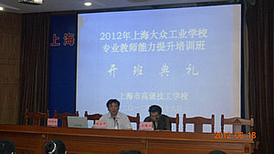 18日上午,当电气部各位教师来到高技校,受到了培训单位领导的热情欢迎。培训单位领导相当重视,为大家精心准备了各项培训资料与授课日程安排。在综合楼11楼思进厅,举行了一个简短而又隆重的开班典礼。典礼由机电工程系主任庄德渊主持。首先,庄主任为大家一一介绍到会的领导与授课教师。其次上海工程技术大学高职学院院长、上海高级技工学校校长刘启中教授致辞。刘教授由高培中心的发展、培训情况、教师结构、办学理念到机电工程系的专业建设,为各位教师侃侃而谈,让大家深感此次培训内容的重要与可贵。同时,刘教授也语重心长地向大家提出了作为电气专业教师应具备理论、技术、对象三点专业要求,希望大家处理好学习、工作与家庭的关系,圆满完成本次培训任务。然后培训班全体师生一起合影,留下了富有意义的瞬间。最后,庄教授又具体介绍了培训班的安排和要求,并带领大家一起参观了实训中心。