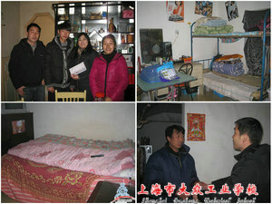 2013年12月28日下午,由机电教学部副主任吴卫斌老师及相关班级班主任组成“2014元旦贫困家庭”慰问小组代表学校向在校13级贫困生开展慰问活动,慰问当天上海的气温比较低,老师们冒着寒风驱车前往教学部13级低保户学生家中送去新年的祝福,通过本次活动带去了学校领导和教师的一片关爱之情,希望这些贫困学生能和其他学生一样,过一个开心,安详的元旦和春节。这也是我校爱心基金开展帮困助学活动的又一动人镜头。