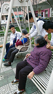跨入敬老院,同学们首先的感受到的是是一种平静和安宁。在和煦的阳光下,老人们正三三两两聚在一起,安安静静的在晒着太阳。迈入老年的他们没有了孩子脸上的天真,青年脸上的憧憬,中年脸上的忙碌,他们像在思索什么,又或许是对自己一路走来,点点滴滴的回忆吧?偶尔头顶上飞过一两只燕子,老人们也从不抬头看看,只是默默地低着头,沉浸在自己对往事的回忆中。