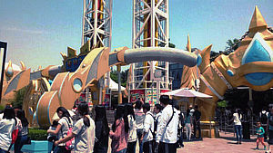 一进大门,大转盘上写的“嬉戏谷”三个大字就映入大家的眼帘。走进去后,哇,里面有各种大型的项目,眼前的情景顿时让同学们兴奋不已,迫不及待地奔向一个个早就盘算好了的目标。