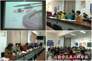 在会上,张主任引发全体教师反思,师德是什么?学生从教师身上学什么?通过简短的讨论了解到教师需要用能教人、能惠人、能示范的职业态度来立师德。张主任在会上与老师们分享了一位年轻教师在听了老教师讲课后的评价,讲课思路清晰,教学内容循序渐进便于学生掌握,教师教学方法得体,学生学情把我准确,教师教学资源丰富,备课充分。由此可以看出学生愿不愿意学,学的好还是不好,关键还是要看老师怎么教,教什么。从课堂上来看,教师是课堂的“主角”,要具备能教和会教的能力,作为教师要避免因班而异和“热烈”与“安静”相互交杂的课堂氛围。