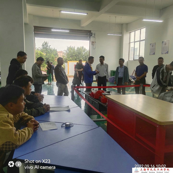 领导们首先来到了新能源汽车与汽车电气实训车间,我校帮扶小组周封伟老师正在这里上实训课程。领导们饶有兴致地观看了实训室的设备以及同学们的实训操作。周老师向张局长汇报了实训课程的安排和进展,张局长对于实训过程中学生互评的环节非常赞同,他认为这可以切实提高实训的效率和效果。