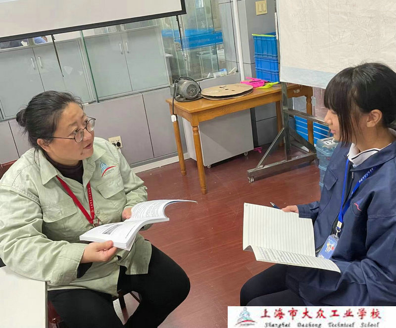 工业机器人技术应用专业232201班的梅依璠同学在谈到为何会选择该专业时说到:“我时常感到文化课的知识太过乏味,但是机械设备背后运转的原理让我感到无法自拔,这就是我选择这个专业的原因。”作为专业课任教的曹壮壮老师,在向她介绍了专业的基本信息后,对她今后的发展提出了几点建议。一是在学习专业知识的同时也要兼顾文化课的学习;二是在学习专业技术时要专精一种机器人,能够做到举一反三;三是想要积极参加各项比赛用以拔高自己的专业技能。