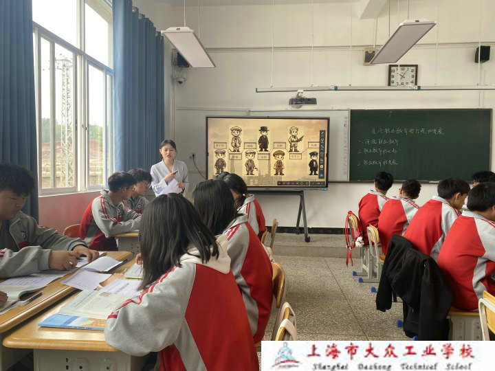 课堂上,徐松老师和孙晓甜老师充分结合学科特点,立足学生实际,设计了丰富多样的教学活动,让学生在轻松愉快的氛围中掌握知识、提升能力。同时,他们还积极与学生互动,激发了学生的学习兴趣和热情。徐松老师引导学生对于现代“学徒制”以及近代职业教育的发展进行探究和思考,同时结合武定地区的职业教育现状进行拓展,从分享学校的发展变迁和国家的政策扶持等方面入手,激发学生的爱党爱国情感。孙晓甜老师巧妙地将“穿越时空”活动贯穿整个课堂,借助时间轴梳理近代职业教育的两个发展阶段,帮助学生纵向理解其发展脉络,分析职业教育发展变迁与时代发展以及社会需要之间的辩证关系,培养学生热爱职业教育的精神,树立为中华民族伟大复兴而奋斗的人生理想。