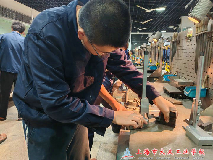 实训现场,金属与工具的碰撞声交织成一曲独特的乐章。学生们全神贯注地沉浸在每一道工序中,眼神中透露出专注与执着。他们手持锉刀,在金属表面来回摩挲,沙沙声仿佛是他们与金属交流的密语。随着锉刀的每一次滑动,金属屑如雪般纷纷扬扬洒落,粗糙的表面逐渐变得光滑平整。然而,这看似简单的过程实则蕴含着无数技巧与耐心的考验。为了达到精准的尺寸和近乎完美的表面粗糙度,学生们不厌其烦地反复测量、精心打磨,一个小小的平面往往耗费数小时的心血,正如顾秋亮在面对深海潜水器关键部件的加工时,面对复杂工艺和超高精度要求,凭借着坚韧不拔的毅力和炉火纯青的技艺,在无数次的重复操作中追求极致,直至达到无可挑剔的境界。这种对细节的执着追求和对完美的不懈努力,正是工匠精神在学生们身上的生动体现。