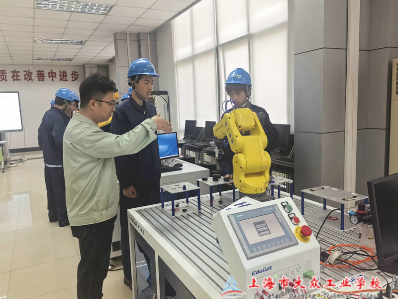 谢俊周的《工业机器人搬运码垛》在11-101实训室开课。教师通过播放工业机器人搬运码垛视频,讲解工业机器人的应用前景,强调工业机器人对制造业升级的意义,激发学生爱国情怀与使命感。然后结合所播放搬运码垛程序示教编程的微课,详细讲解程序规划的要点,并给出一个简单的搬运码垛场景,引导学生运用所学知识进行程序规划与初步设计,再演示手动运行调试,强调操作要点与注意事项。最后通过小组分工协作,学生分组进行搬运码垛程序的示教编程与手动运行调试。